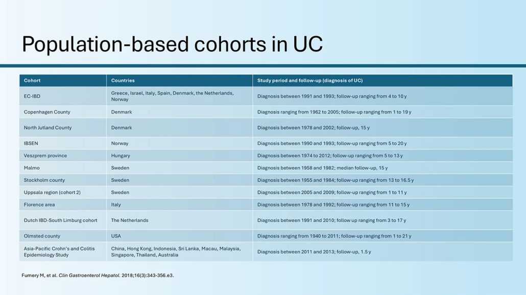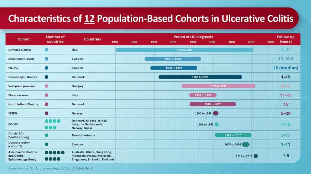 The challenge: A table showing different ulcerative colitis cohorts with no clear timeline or relationship between groups.